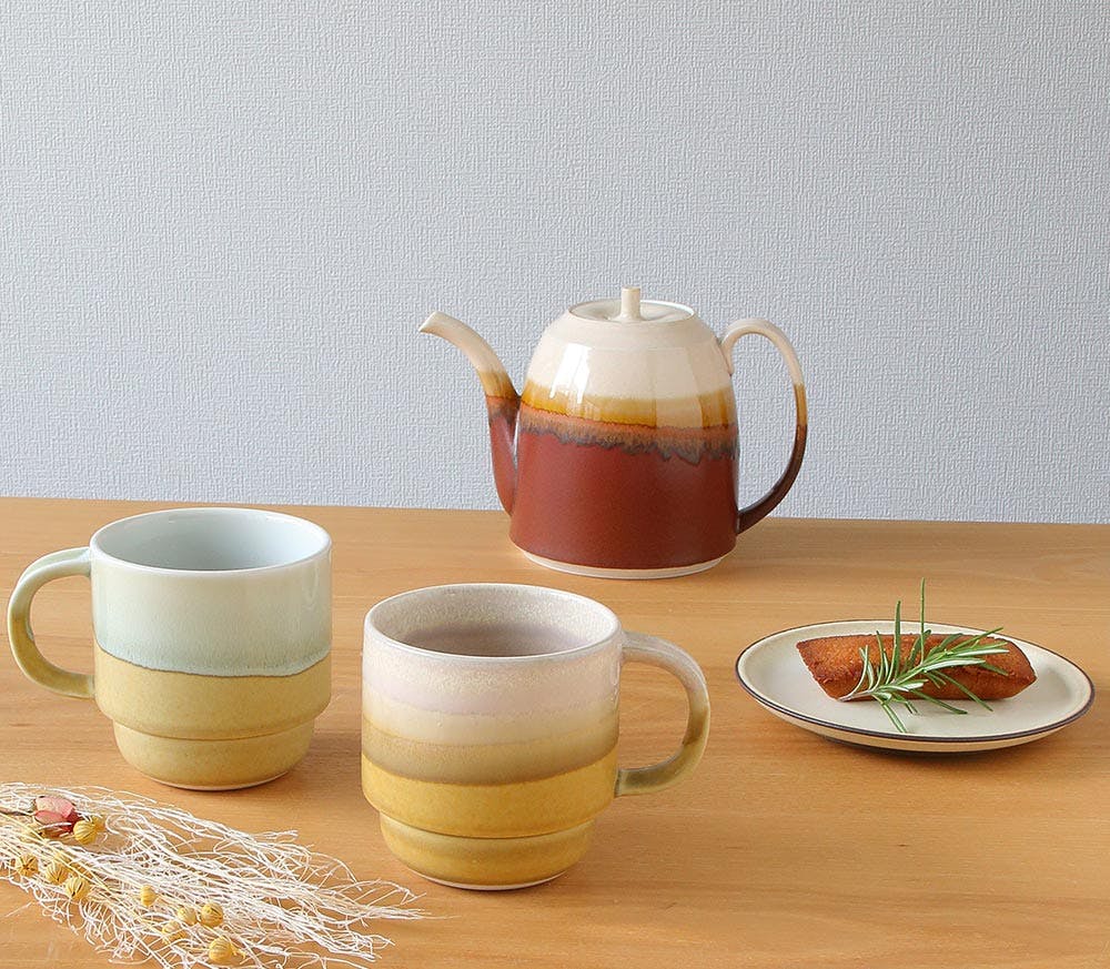 薬の濃淡を地層(STRATA)に例えた個性的なポット。 浮き出た層は一つ一つ異なるので釉薬の表情の違いを楽しめます。 電子レンジや食洗機に対応しており、おうちでもオフィスでも日常使いにおすすめのおしゃれなポットです。