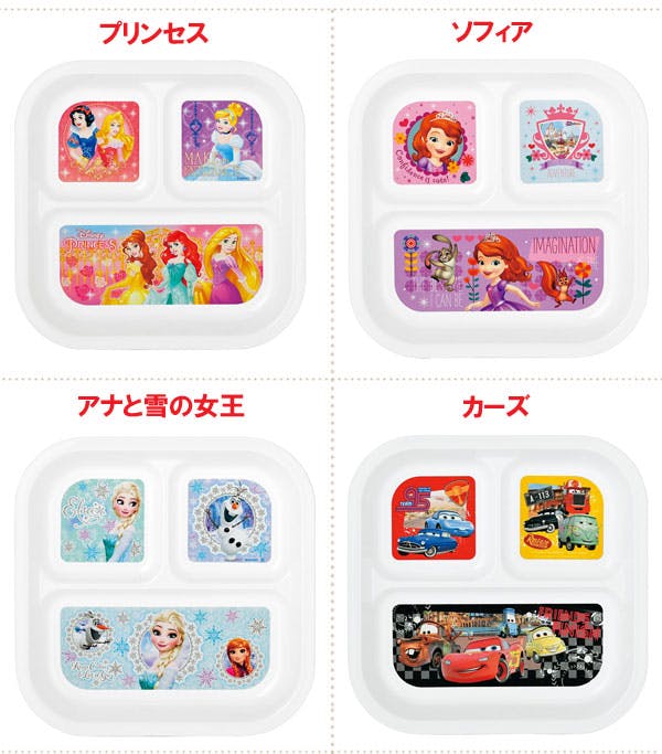 仕切りがあり、盛り付けしやすいランチプレート。ある程度深さがあるので、スプーンなどすくいやすく食べやすい形です。 人気のディズニーキャラクターと一緒だとお食事タイムがますます楽しくなります。
