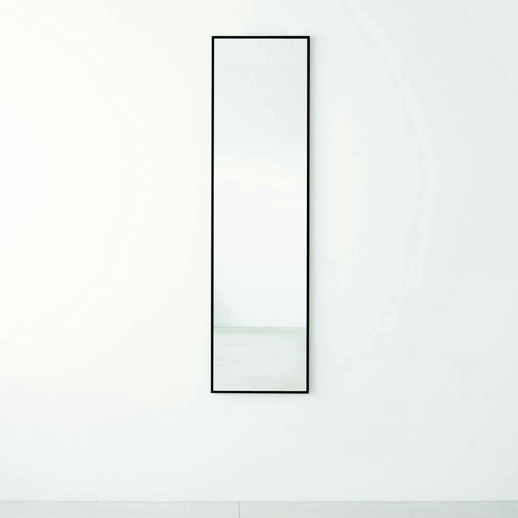 【日本製】【細枠ウォールミラー 幅42cm(ブラック/黒) 】天然木 姿見 鏡 ワイド 高級感 玄関 トイレ 洗面 木製 飛散防止加工 壁掛け 国産 完成品