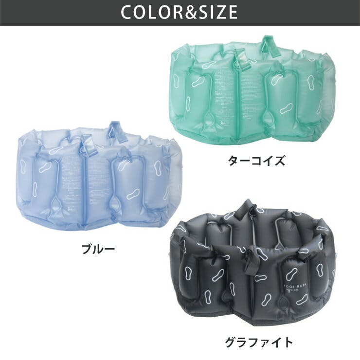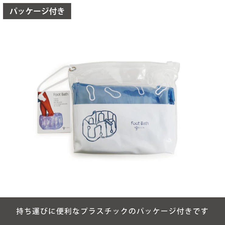 お手軽に足湯を楽しめる空気注入式のフットバス。 空気の壁に包まれて、脚と足裏ともに優しい使用感です。 使わない時は畳んでコンパクトにでき、プラスチックのバッグ付きで持ち運びにも便利です。 旅行などに持っていくのもおすすめです。