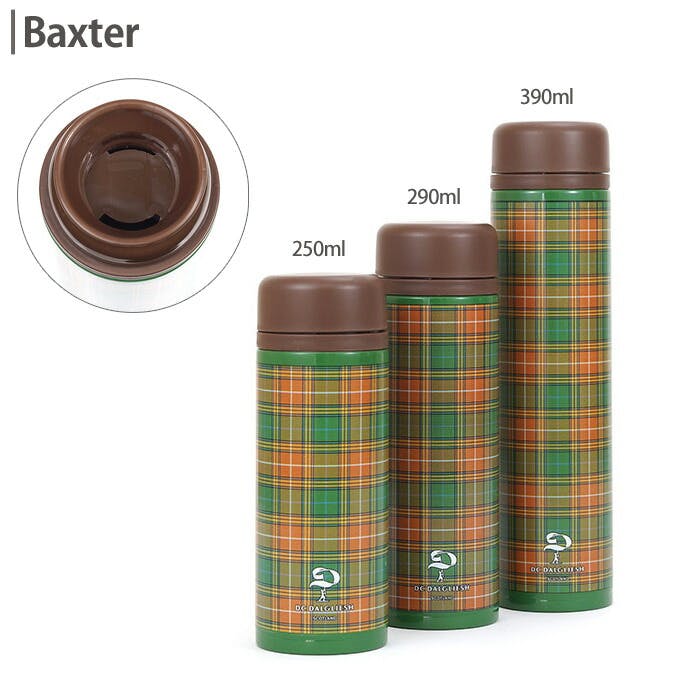 世界最高峰のタータンブランドDCダルグリーシュのタータンチェック柄ステンレスボトル。保温も保冷もOK! 本体に一周ぐるりとキレイにタータンチェック柄がプリントされています。 フタはしっかりとフタを閉められるスクリュー式。大小2つの飲み口があり、冷たい飲料と温かい飲料など中身によって飲み口を選べます。 コンパクトながら口径が広くお手入れもしやすく、氷もしっかり入れられます。