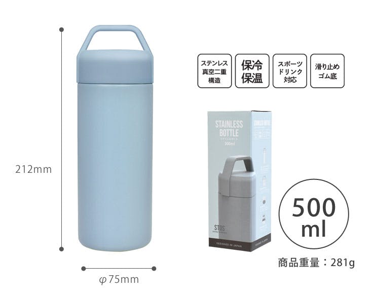 STOS ストス ステンレスボトル 500ml 逸品社 シュガーランド【水筒 保冷 保温 スポーツドリンク対応 ステンレス マグボトル ランチグッズ】 サックスブルー
