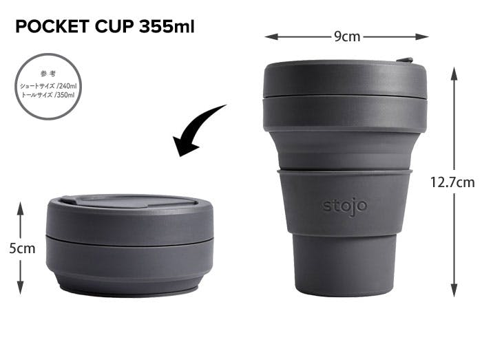 ストージョ stojo POCKET CUP 355ml 12oz ショート/トールサイズ【マイカップ タンブラー ふた付き こぼれない コーヒー 折り畳みコップ 折りたたみカップ】 EUCALYPTUS