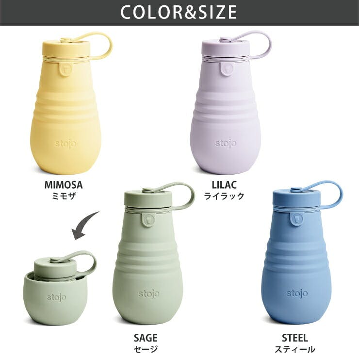 ストージョ ジュニアボトル stojo Jr.BOTTLE 400ml 14oz【蓋付きタンブラー 折り畳みボトル 折りたたみ ボトル】 スティール