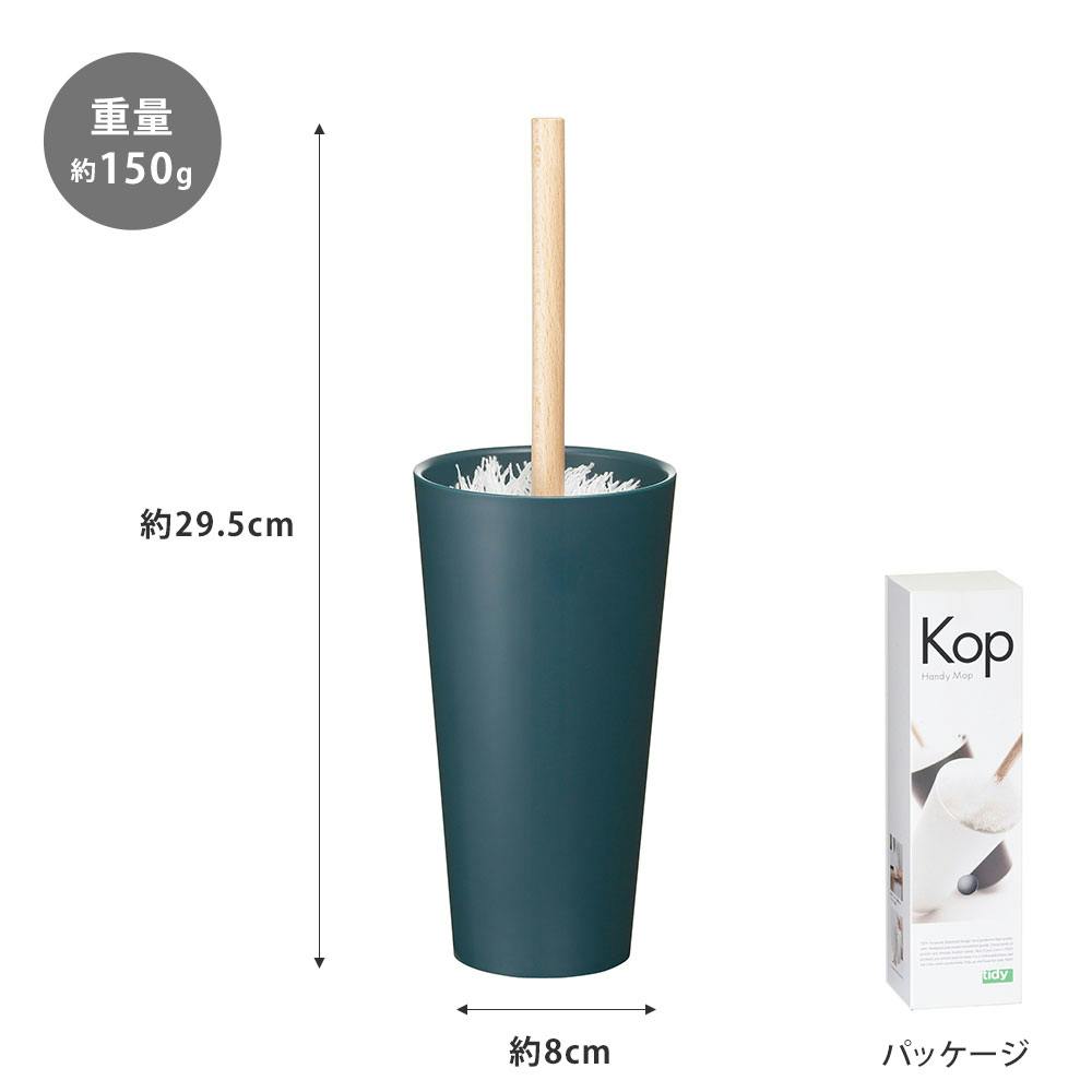 コップ・ハンディモップはコップのようなケースつきのハンドモップです。 ケースに入った姿はインテリアにもとけ込み、手近に置いてサッと使えます。 グリップは高級感のある木製。 やわらかく、細いモップ糸がこまかなところのホコリもスッキリとってくれます。
