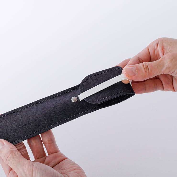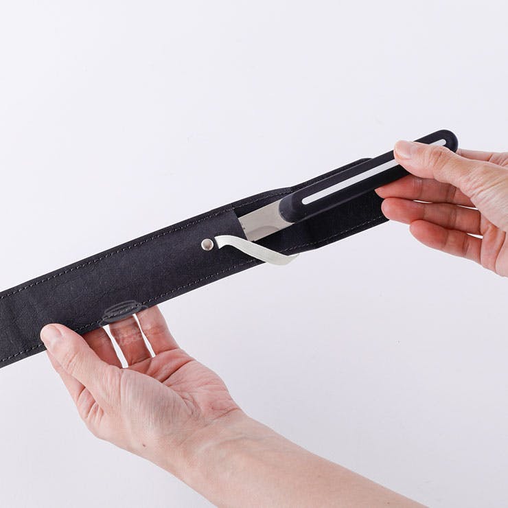 汚れたら洗える耐水性と紙ならではの軽さが特徴のWashable Paper(洗える紙)を使ったアルコスナイフ ロング専用ケース。 ゴム製の留め具で開閉しやすいシンプルな作りです。