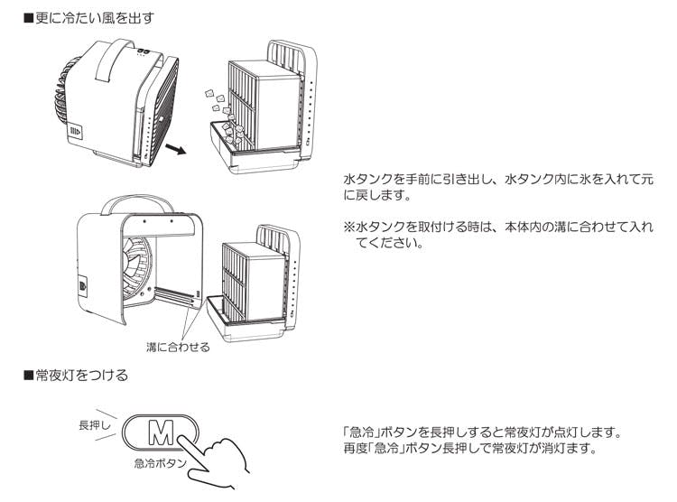どこにでも置ける静音設計のコンパクトな卓上冷風扇。 タンクに水を入れば冷風扇、水を入れない場合は普通の扇風機として使えます。 静音設計(35dB)で就寝時や赤ちゃんのお昼寝用にもおすすめ。 マイナスイオン放出モード、LED夜間ライト(常夜灯)付き。