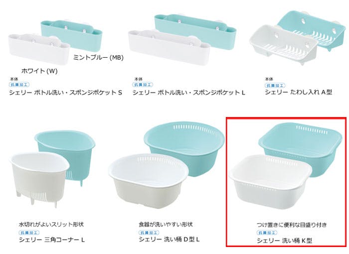 進化するキッチンに合わせて使いやすさを実現! 技ありアイテムでシンクまわりがグンと使いやすくなります。 洗い桶 K型は、つけ置きに便利な目盛が付いています。