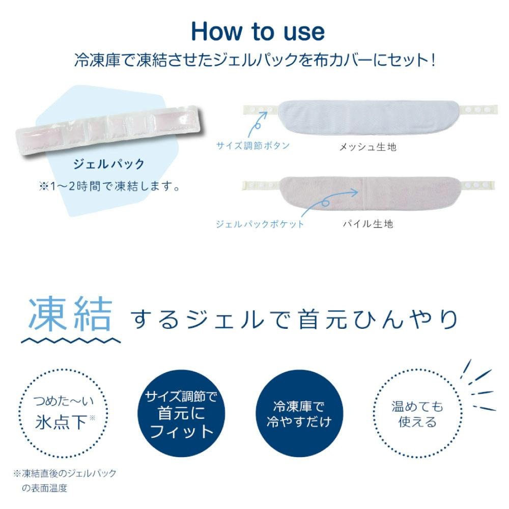 冷凍庫で凍結させて首に巻く、付け襟のようなアイスカラーです。 首元を冷やして、手軽に暑さ対策。