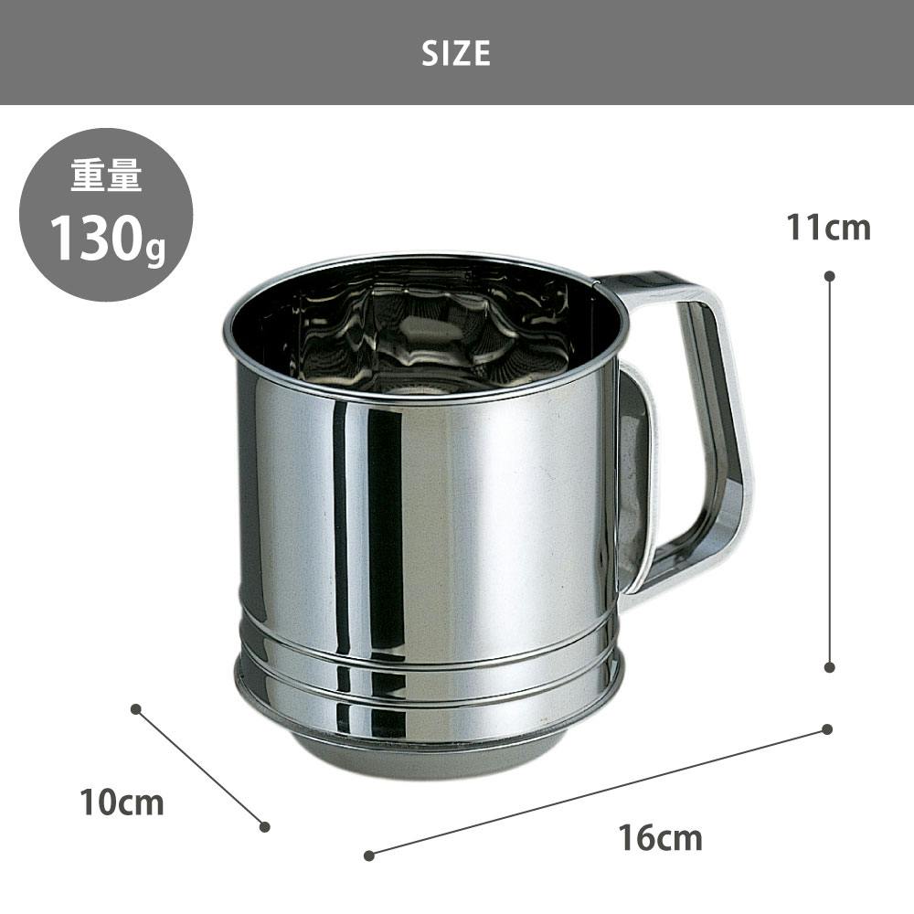 サビにくくお手入れしやすいステンレス製の粉ふるい。 バネの反動を利用してはじくようにふるうと、早くふるえます。