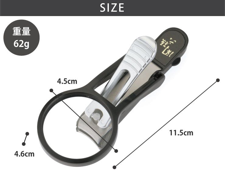 刀匠関孫六の伝統から生まれたツメキリ。大口径のルーペ付きで刃先がよく見えます。 側面がU字カットになったストッパー付きで、爪が飛び散りにくくスムーズな爪切りを叶えてくれます。 エッチング加工が施された爪やすりは、滑らかかつ形よく仕上げることができます。