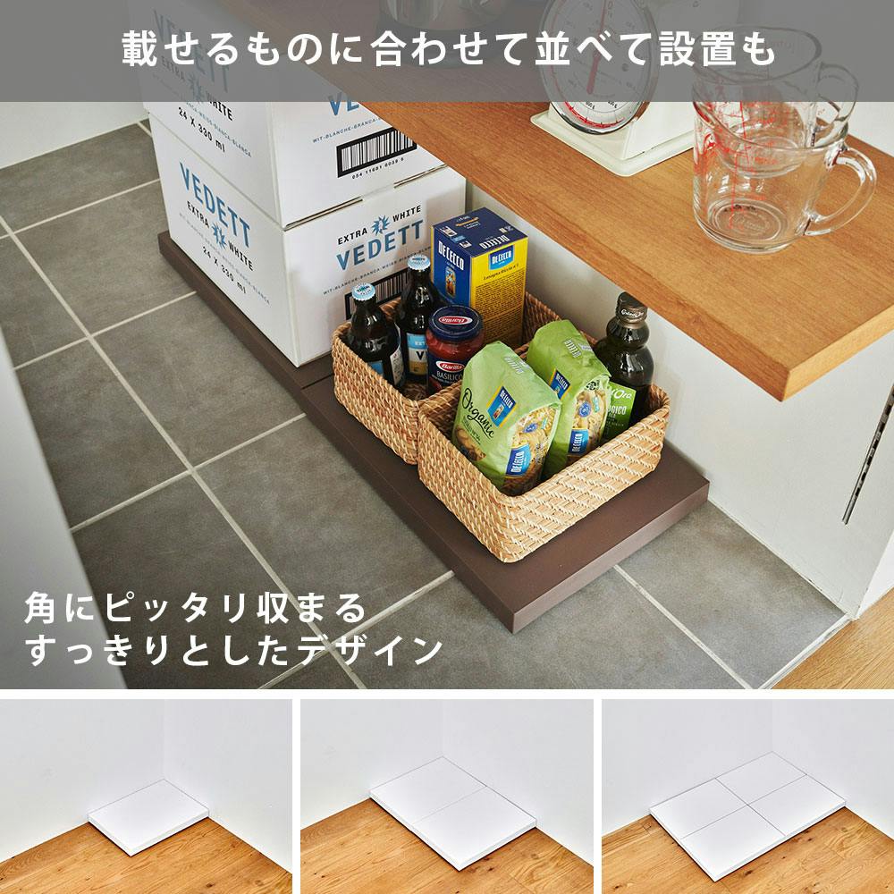 プラットフォームは、家の中で重いものや移動しにくい物を載せて簡単に動かせます。 キャスターが目立たず、角にピッタリ収まるすっきりとしたデザインです。 複数を並べて使うこともできます。
