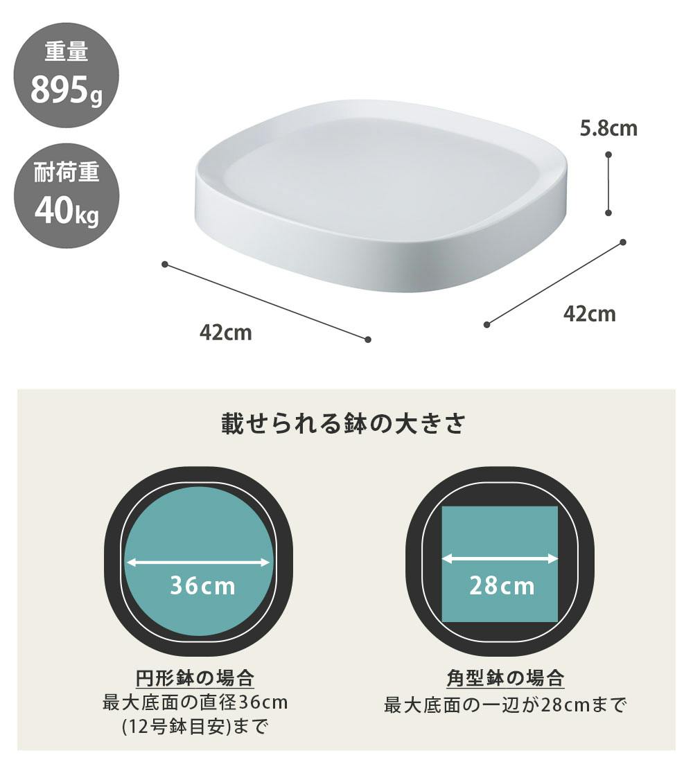 有効内寸:36cm 円形鉢の場合:最大底面の直径36cm(12号鉢目安)まで 角型鉢の場合:最大底面の一辺が28cmまで