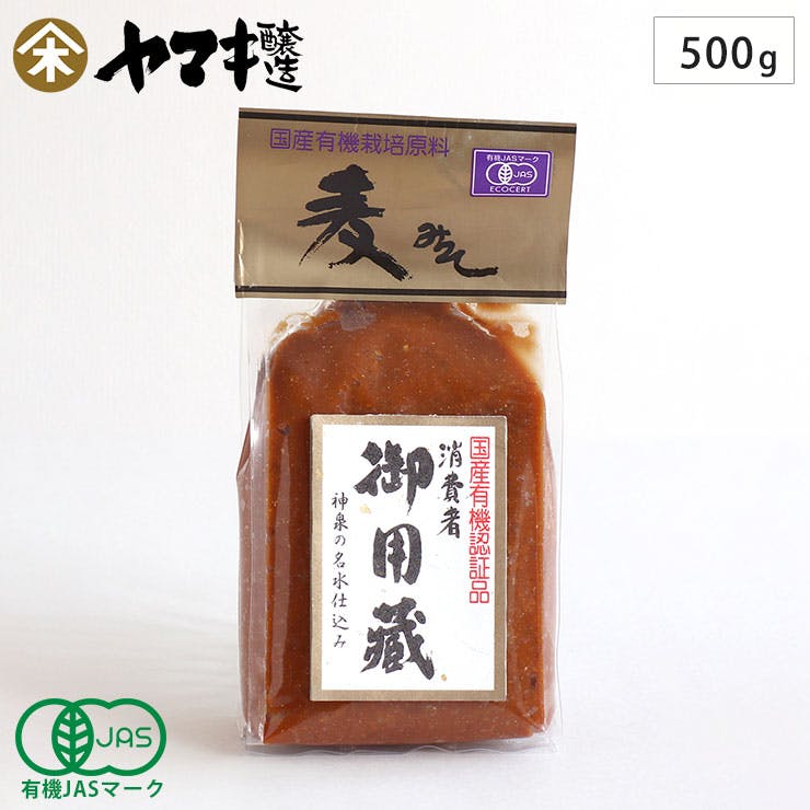 ヤマキ醸造 国産有機麦味噌 500g 有機JAS認証 消費者御用蔵【麦みそ 味噌 有機 無添加 国産 オーガニック 生みそ 有機大豆 有機大麦 日本製 食品】