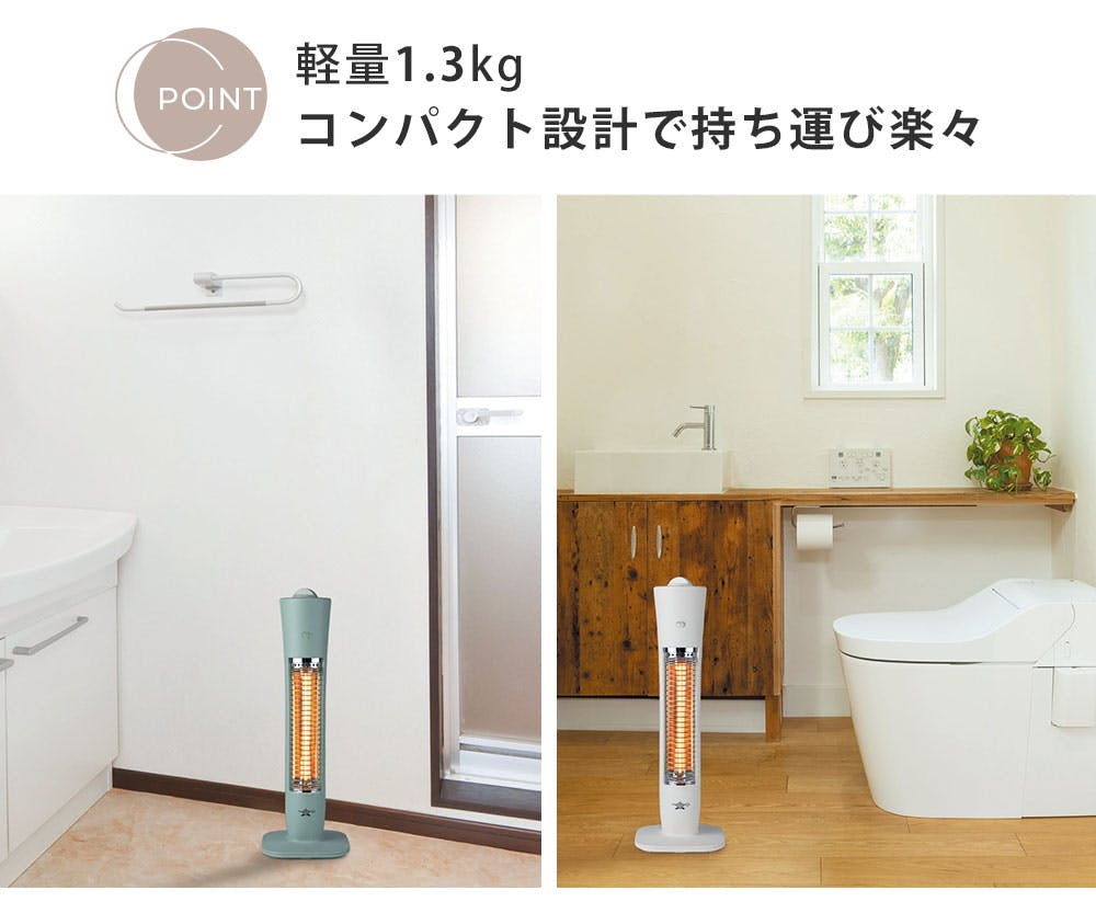 アラジン 遠赤グラファイトヒーター コンパクト 2段階パワー切替 グリーン ホワイト AEH-G409N(G)(W)【遠赤外線 電気ヒーター グラファイトヒーター 速暖 電気ストーブ 暖房 スリム 軽量】ホワイト