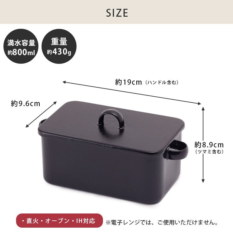 キャンプでもお家での料理でも自在に使える琺瑯製メスティン。 琺瑯メスティン深型は、2合のご飯が炊けます。カレーやシチューも2人分調理できるサイズです。軽量で、変形に強いので気にせず持ち運びできます。 丈夫な琺瑯製なので、アルコールバーナーや焚火でもOK。ご家庭ではガスコンロ、IH調理器でも使えます。オーブンでパンを焼くこともできます。 琺瑯は酸や塩に強いので、料理を選ばずに調理できます。 両サイドに持ち手がついているので、アウトドアでも食べやすい形状です。 焚火の炭汚れや料理の油汚れなども簡単