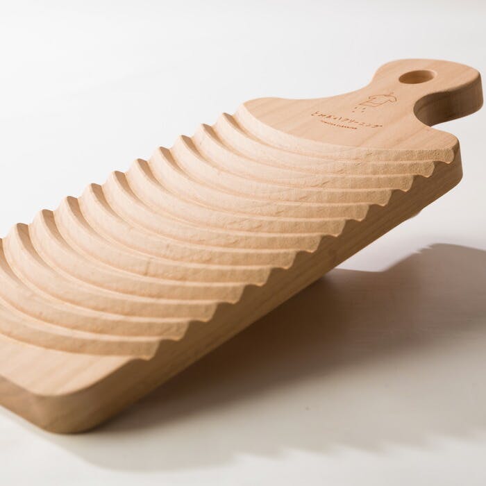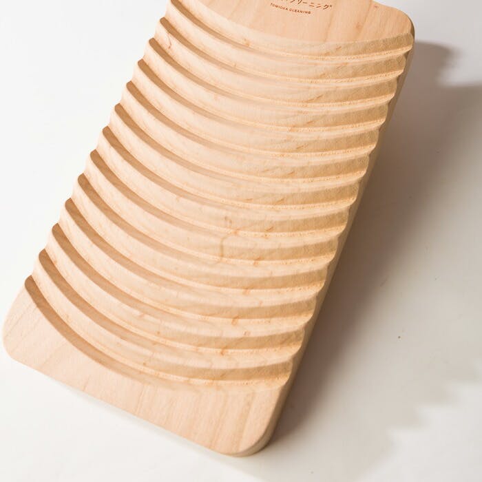 昔ながらの洗濯板は、手洗いの元祖ともいわれる便利な道具。 手でもみ洗いをするより生地を傷めずによく落ちるので代々受け継がれてきました。