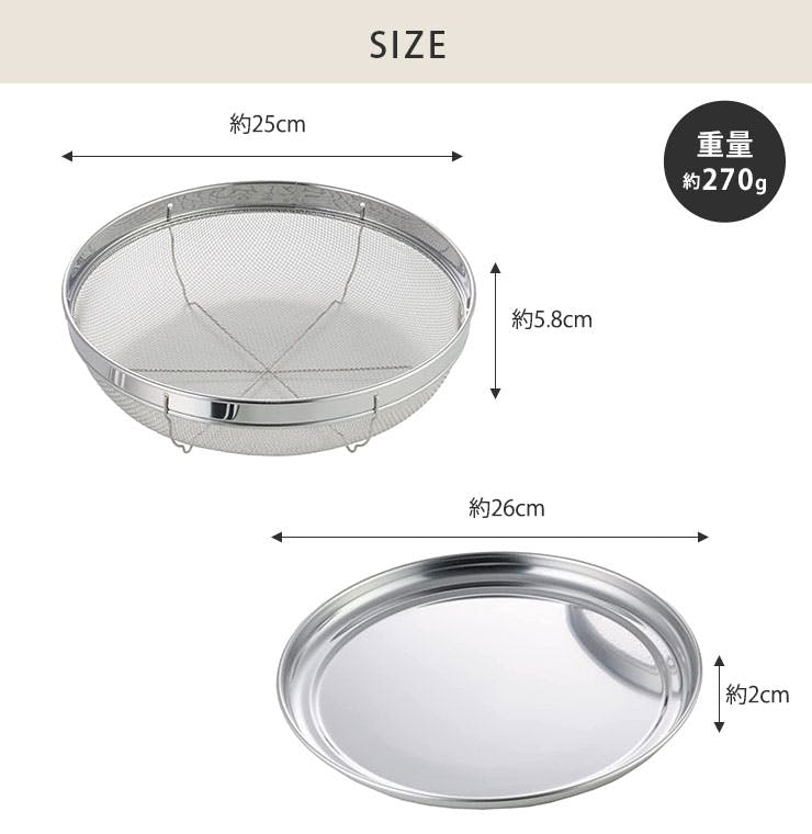 ザル:径25.0×高さ5.8cm、トレー:径26.0×高さ2.0cm