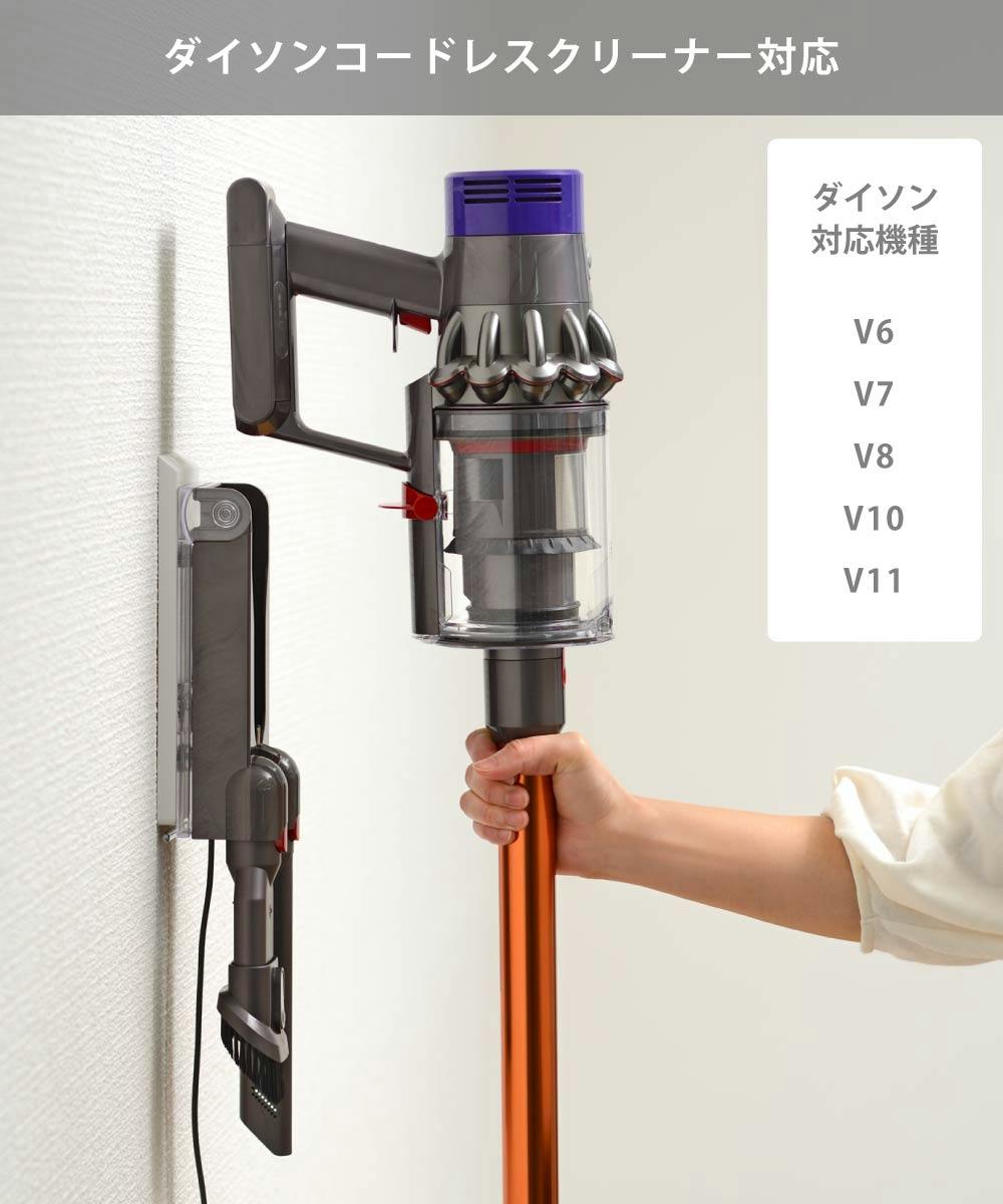 壁に大きなネジ穴をあけずに取り付けることができる石こうボードピンのクリーナー壁付けホルダー 木ねじの効かない石こうボード壁に、専用のピンで固定。 穴も目立たず強力に壁面に取り付けが可能です。