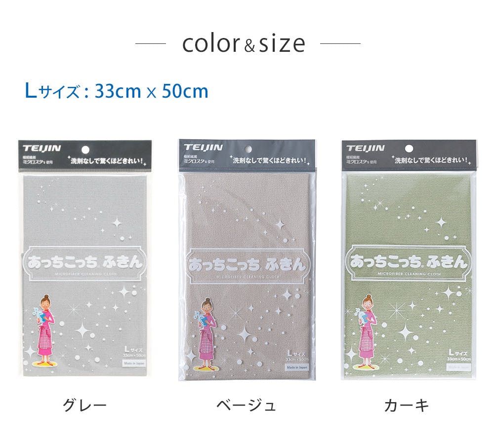 あっちこっちふきん L テイジン TEIJIN【ふきん 布巾 クロス 掃除 シンク周り マイクロファイバーLサイズ 日本製】 カーキ