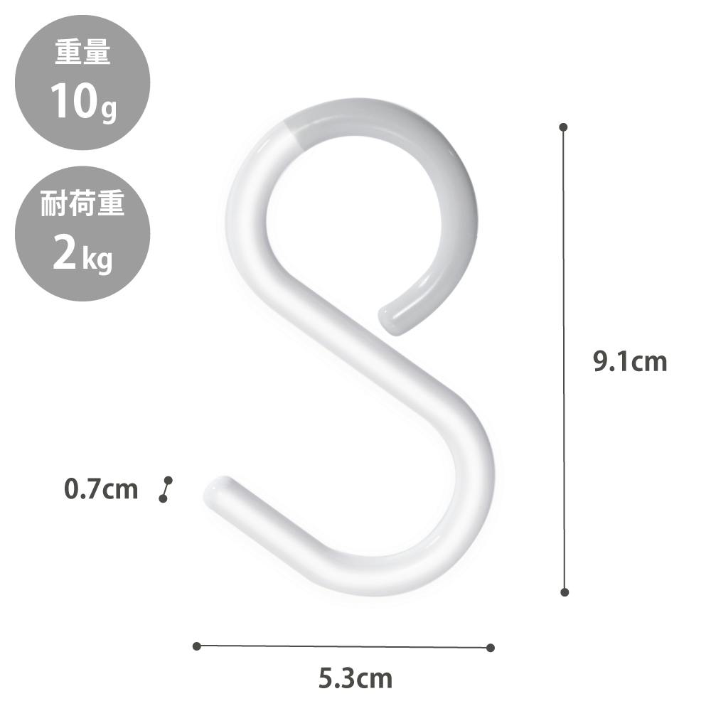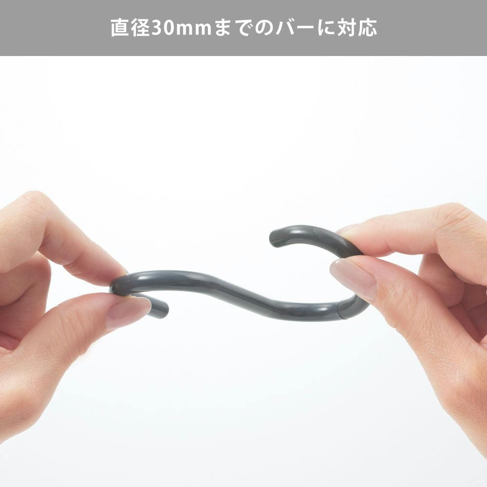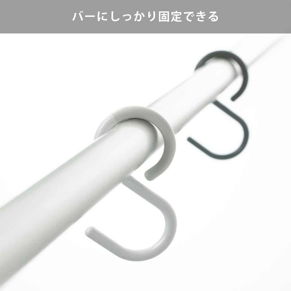先端がフレキシブルに曲がり、モノを掛けたり取ったりする時もバーからはずれにくいS字フックです。 バスルームの掃除道具や、小物の収納に活躍します。