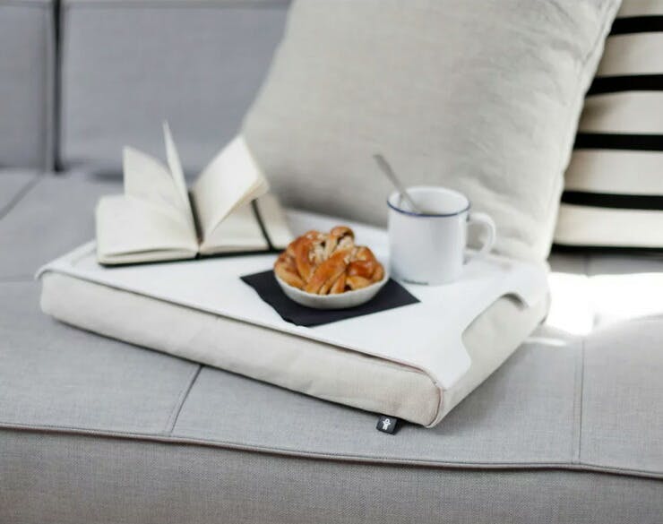 ベッドの上で朝食や庭でお茶を飲んだり本を読んだりする際に便利な膝上テーブル。 ソフトなクッションが膝にフィットします。 テーブルスペースが無くてもノートパソコンを置いて座りながら作業ができます。 コンピューターからの熱を分散してくれます。 カバーは洗濯可能です。