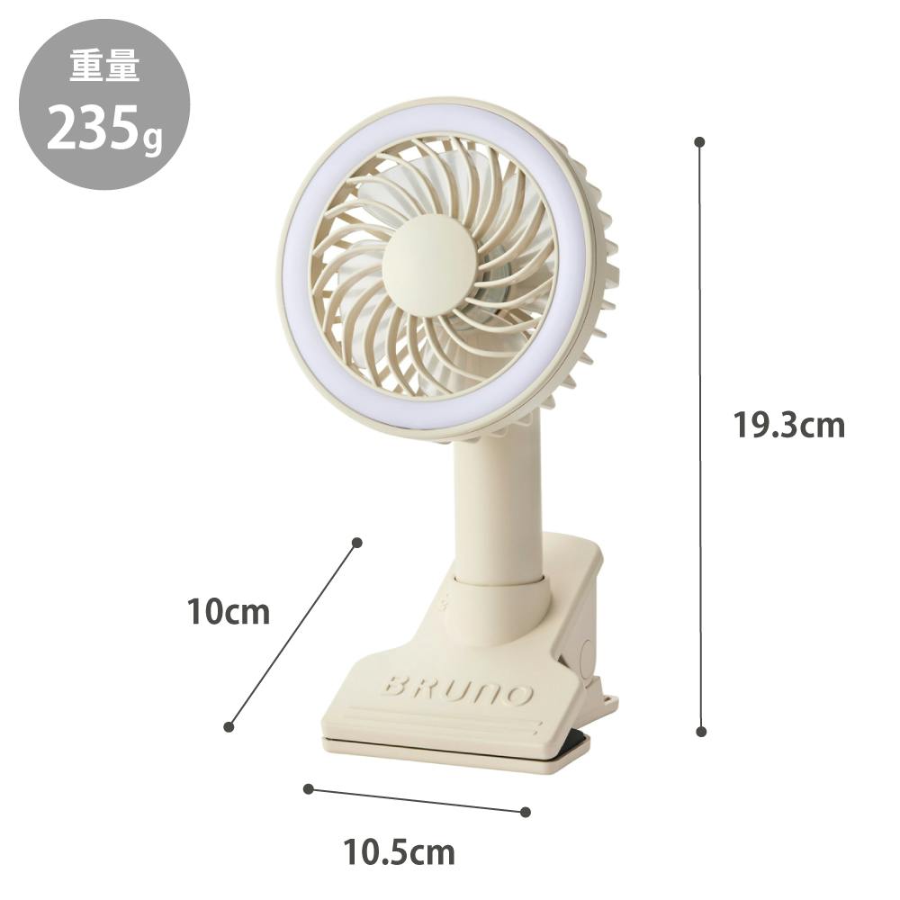 ブルーノ ポータブルクリップライトファン BRUNO【扇風機 ハンディファン デスクファン 小型扇風機 クリップ 卓上 ベビーカー アウトドア 持ち運び】 グリーングレー