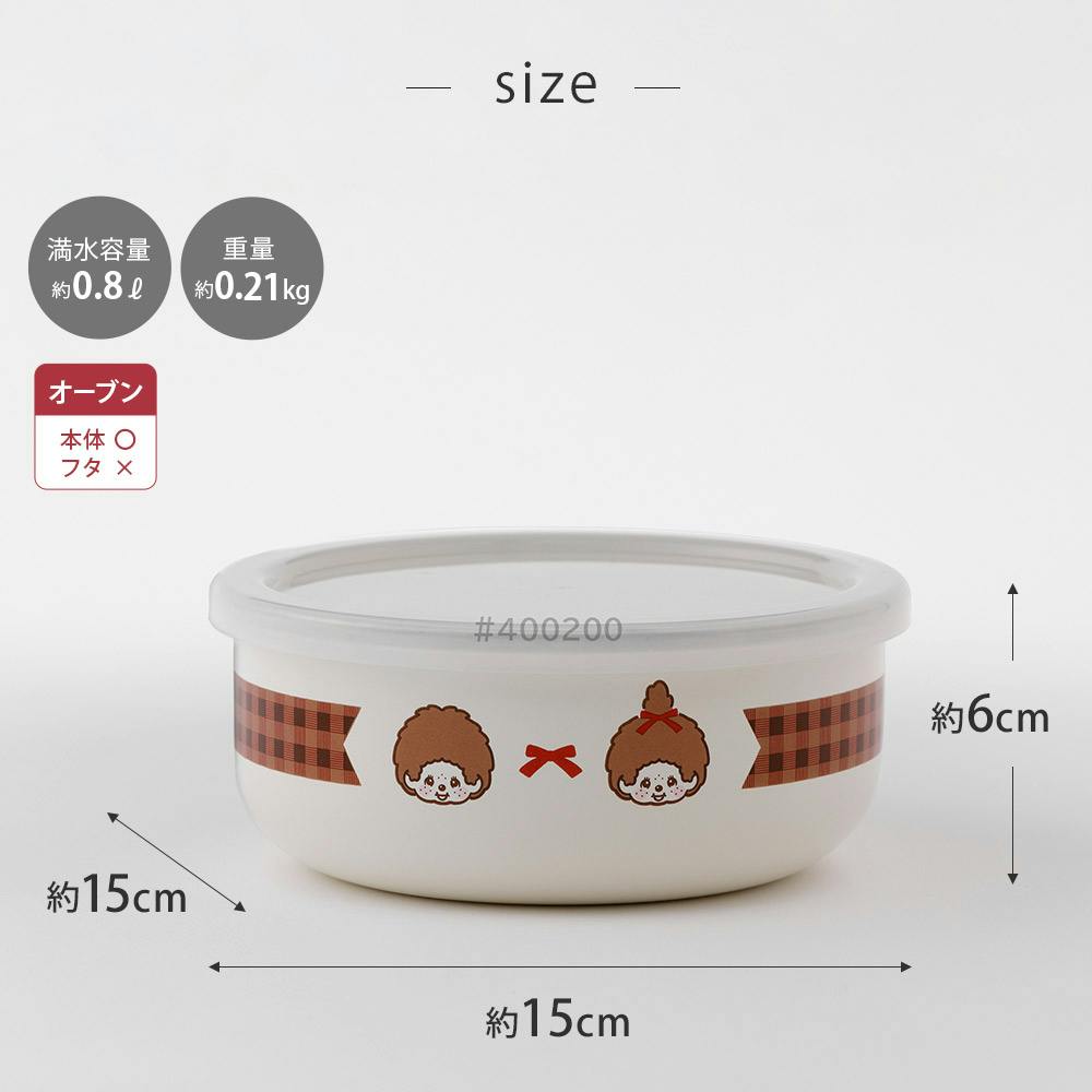 チェックのリボンがレトロでかわいいモンチッチチェックシリーズ。 食材の保存やボウルとして料理の下ごしらえにも使える丸型ホーロー容器です。 ホーローは酸や塩分に強いため、食材を選ばず保存ができます。冷蔵・冷凍保存にも対応。 表面のガラス質は汚れが付きにくく、匂いうつりも少ないので、味噌やキムチなどの発酵性食品の保存にも適しています。