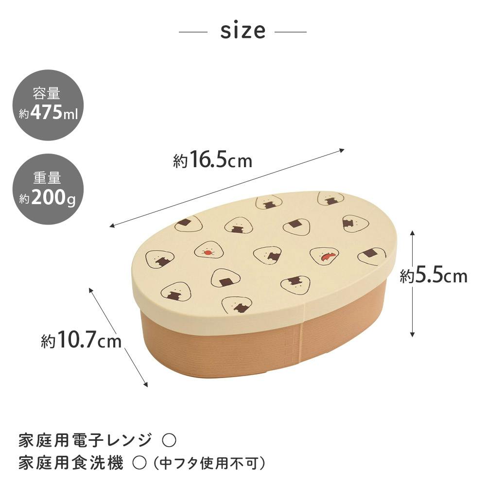 抗菌加工が施されたおにぎりさんのランチグッズ。 毎日のランチタイムに活躍します。 一段タイプの弁当箱は使いやすく、オーバル型なので隅まで洗いやすいです。 便利なランチベルト付き。 中蓋を外せば電子レンジ、食洗機対応です。