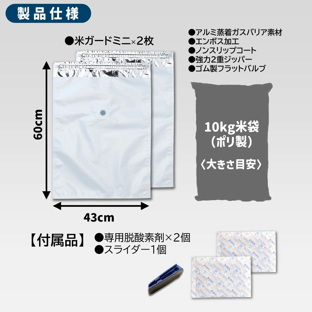 お米 保存袋 5~10kg袋用 2枚入 脱酸素剤付属 真空パック 極厚 米ガードミニ 無酸素 アルミ製 長期保存 酸化防止 防虫 防カビ 光遮断 白米 玄米 長持ち 密閉袋 米保存袋 長期保存袋 鮮度保持袋 真空 光遮断 虫除け 環境技研