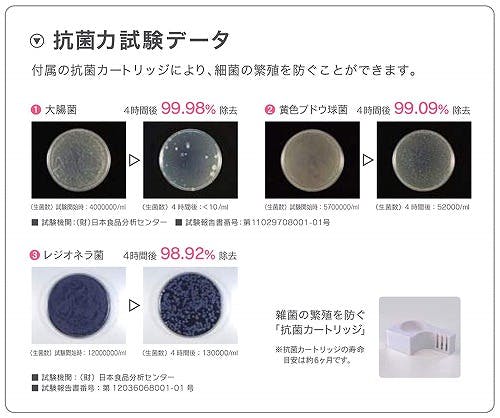 ・商品サイズ:幅13.5cm×奥行き7.9cm×高さ4.5cm・本体質量:約126g・カートリッジの交換目安:6ヶ月・使用水量:約500L・材質:ABS、トルマリン石、麦飯石・生産国:中国・対応機種:AHD-010/012/013/014/015/016、AHD-017/018、ASZ-015、AKS-017、SWD-8108