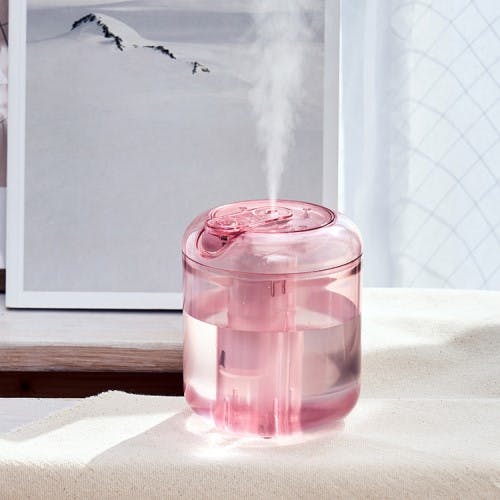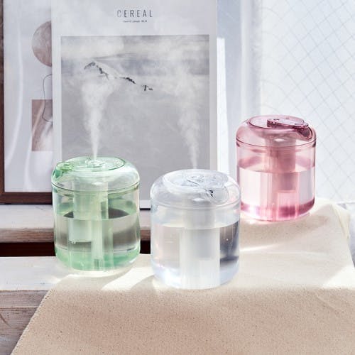 • 充電式miniクリア加湿器 LEDライト付 スモーキーピンク ライフオンプロダクツ LCAHF006-SP