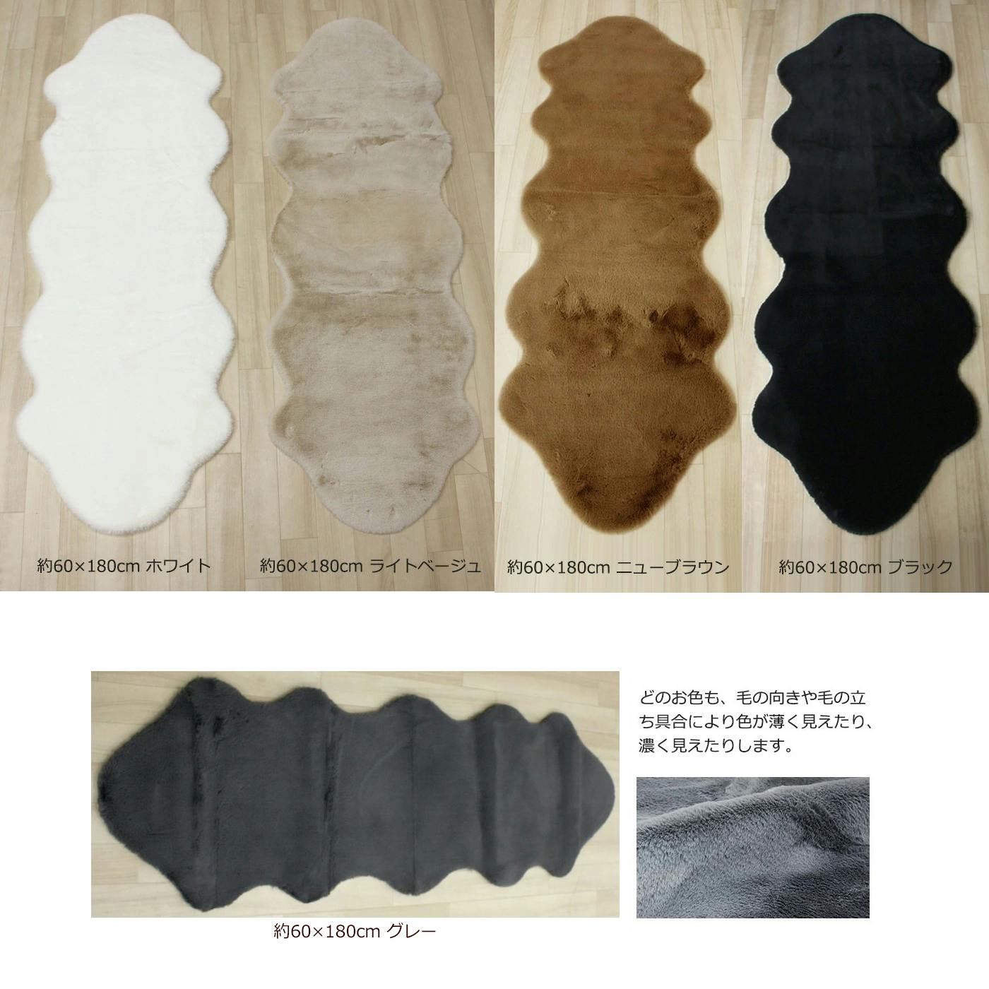 インテリアショップゆうあい フェイクムートン ラグ マット fakemuton (Y) ロック加工 水洗い 手洗いOK 短毛 約60×180cm (2匹サイズ) ライトベージュ やわらか ボリューム おしゃれ 変形 人工ムートンラグ ムートン ムートンマット