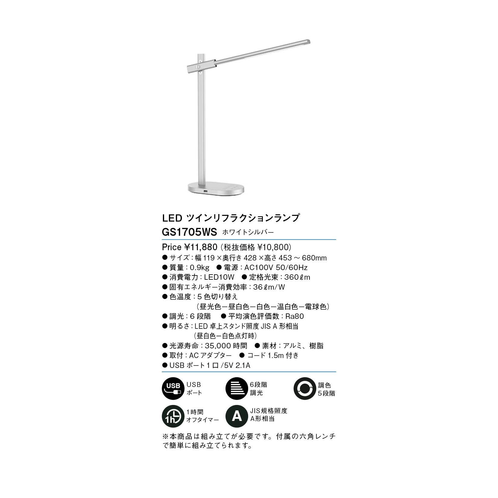 オリンピア照明 MotoM LED ツインリフラクションランプ GS1705WS ホワイトシルバー