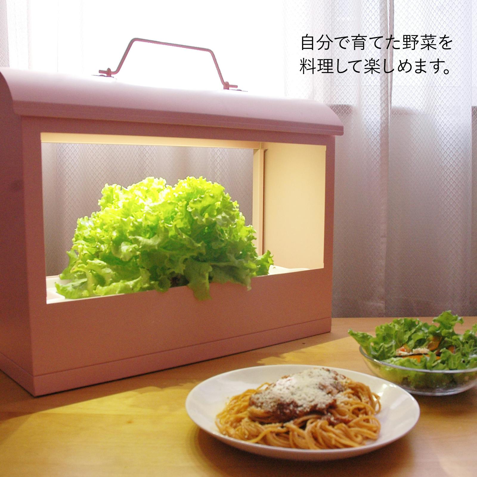 カラフルな栽培器。光が強いため、レジナトマトなど栽培できる。栽培終了後、栽培ケースは中性洗剤で洗うことができます。