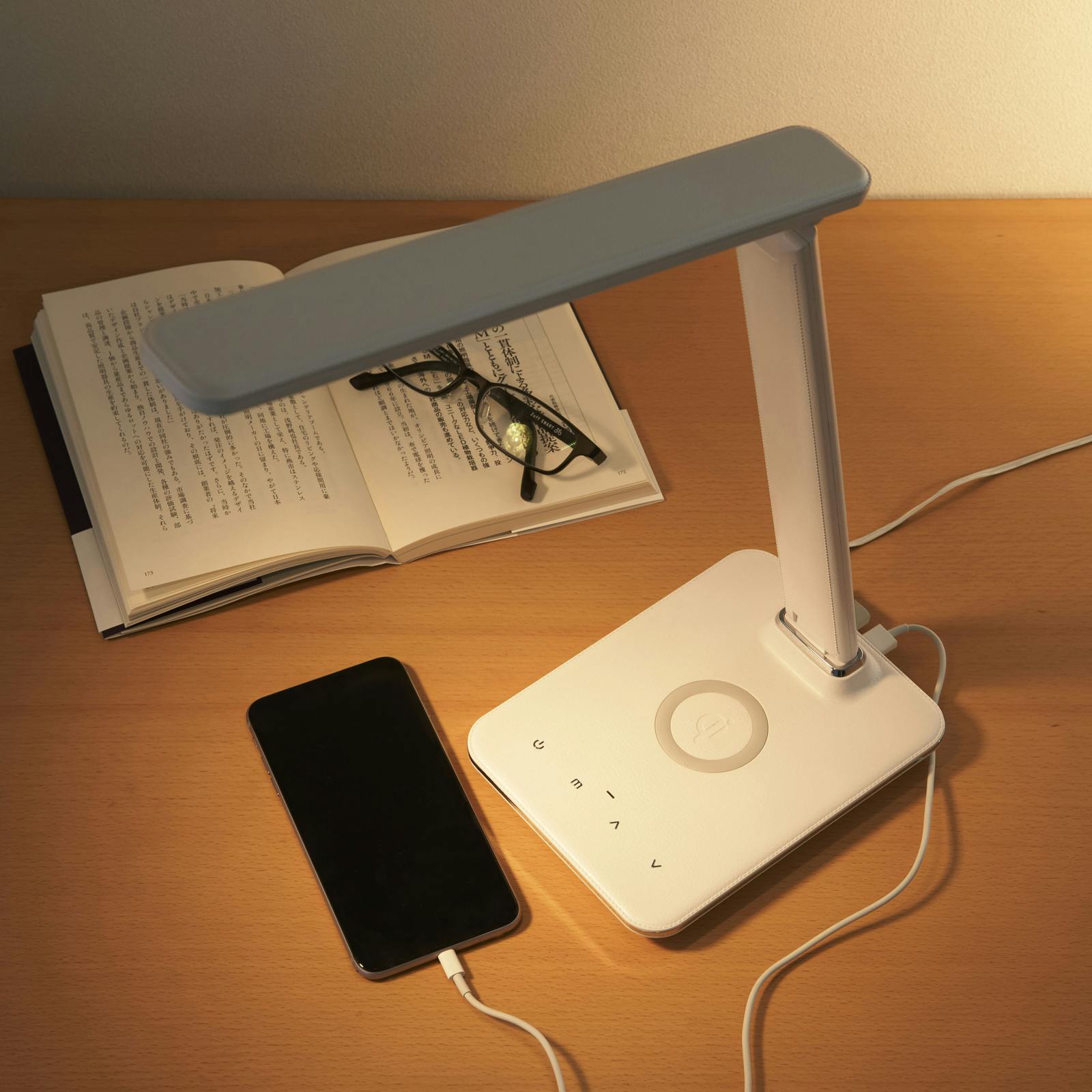 オリンピア照明 MotoM ワイヤレスチャージャー機能付き LED デスクスタンドライト GST006QB 白