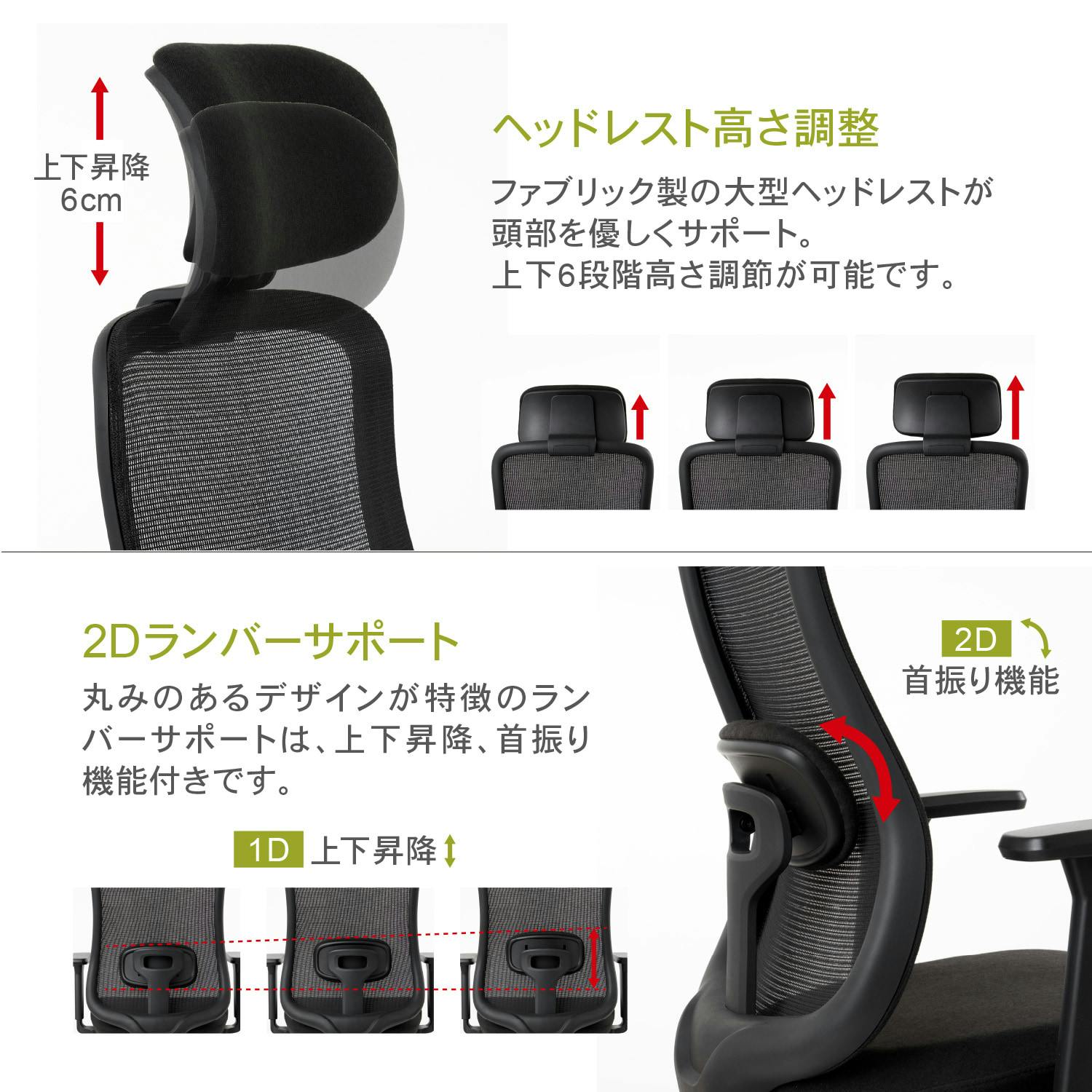 ●最大120°シンクロロッキング ●3Dアームレスト ●2Dランバーサポート ●推奨身長 150cm~185cm ●低座面仕様(最低座面高40cm)