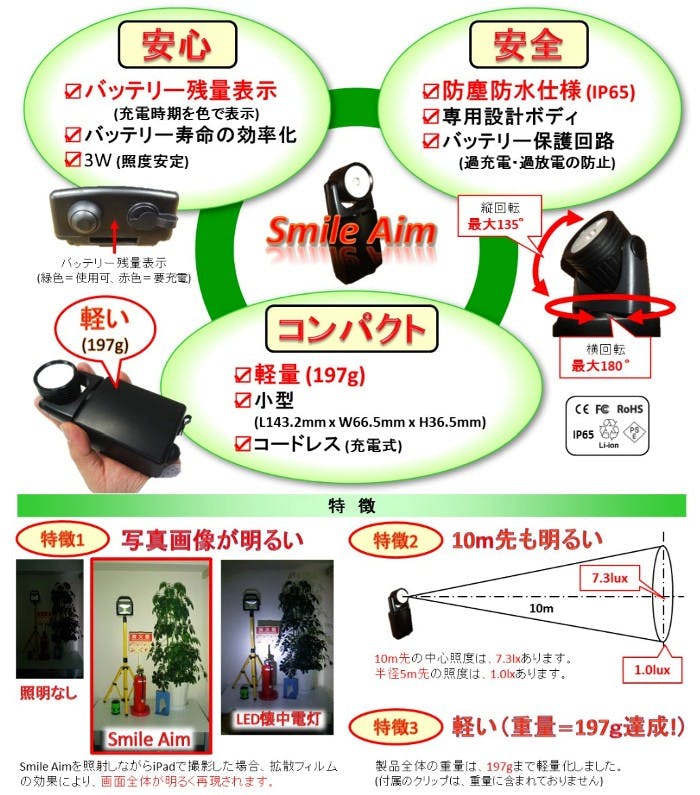 ルクス・エナジー Smile Aim(スマイルエイム) LED充電式ライト SA3001P