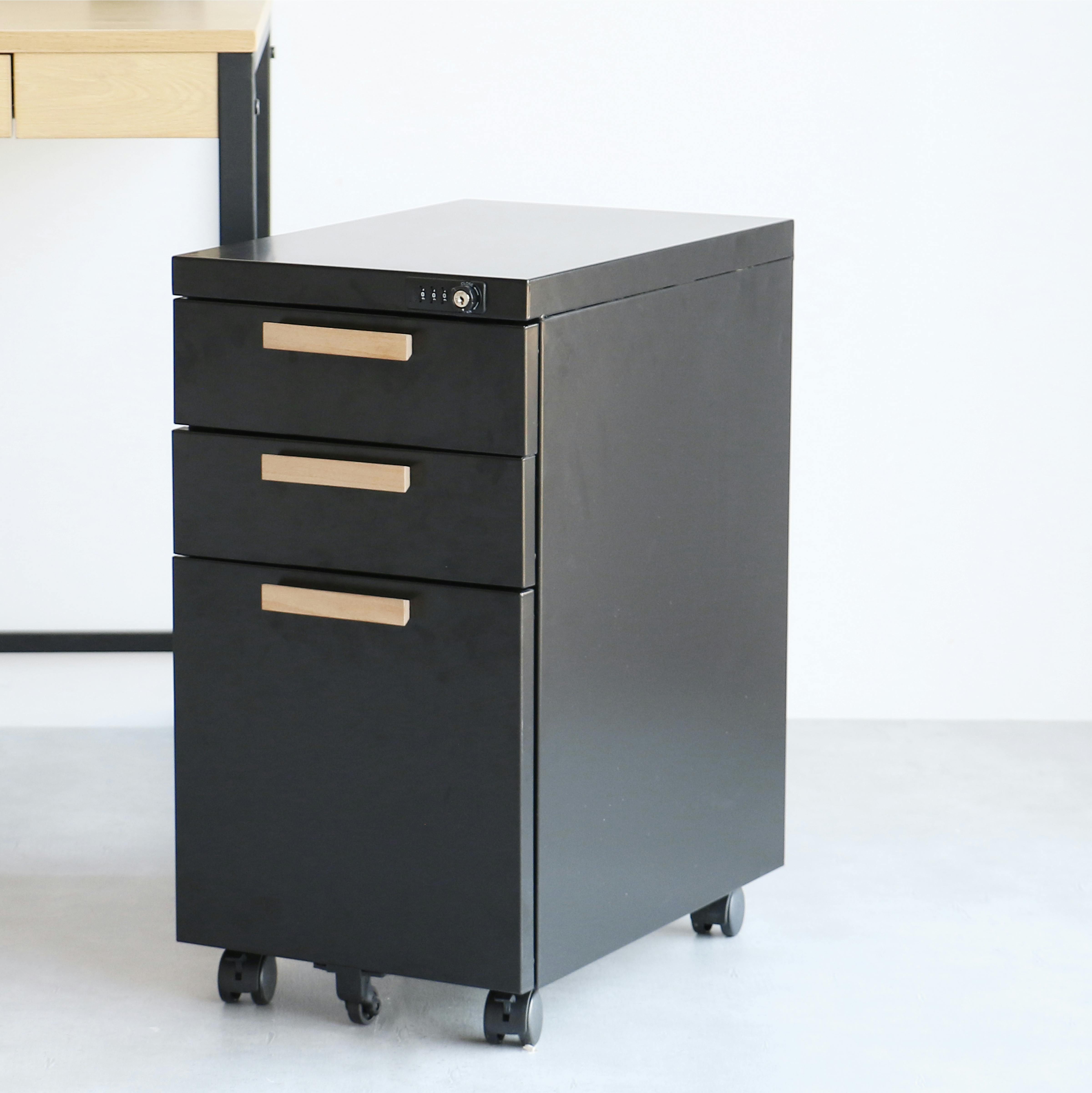 スチール×天然木 温もりのある優しい印象のデスクワゴン Desk Wagon ブラック