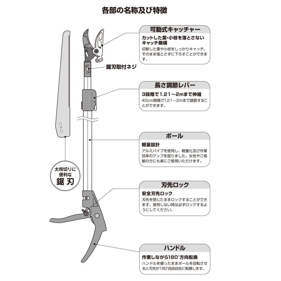 大進 伸縮式 高枝切りばさみ 2m 剪定 鋸 高枝切ばさみ 高枝切鋏 3段 4939736703397