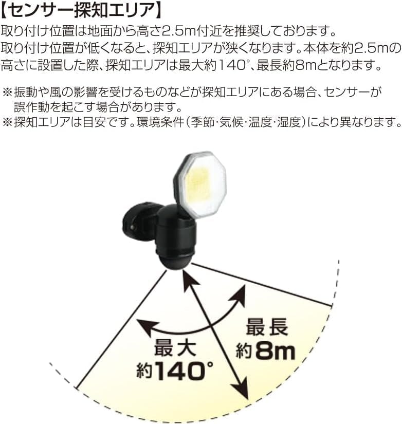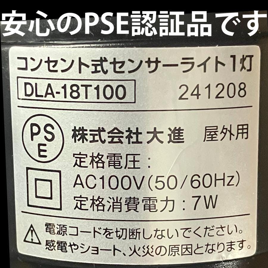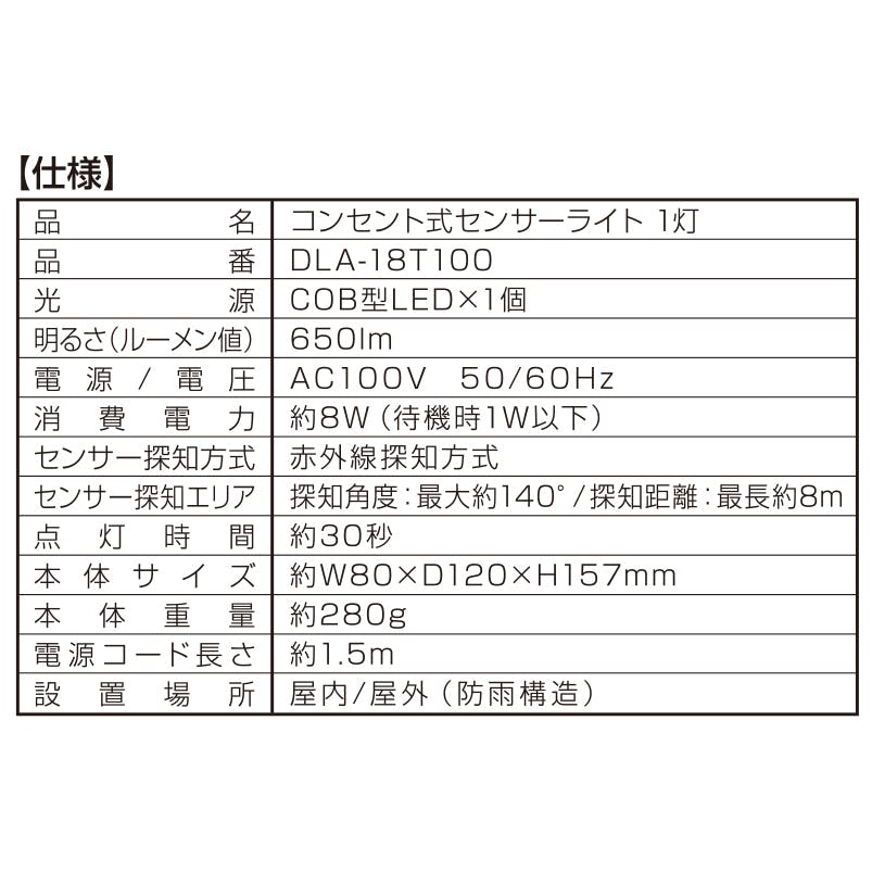 大進 センサーライト AC100V コンセント式 屋外用 1灯式 LED 防雨 人感 暗くなると点灯 防犯ライト DLA-18T100