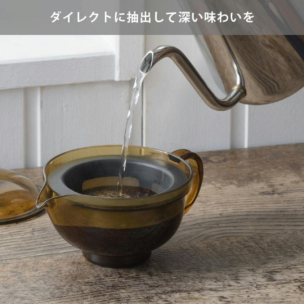 ハンドドリップよりも手軽にコーヒーを淹れることができる、新ジャンルのコーヒー抽出器具。 紙フィルターいらずで手軽に深いあじわい。 一般的なペーパードリップに比べて、コーヒーオイルをダイレクトに抽出でき、豆の個性を余すことなく楽しめます。