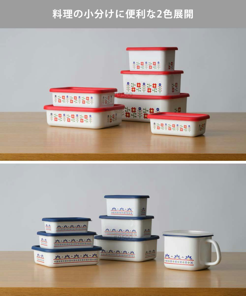 酸や塩分に強く食材の保存に適した琺瑯容器。北欧をイメージしたデザインのミーサシリーズ。