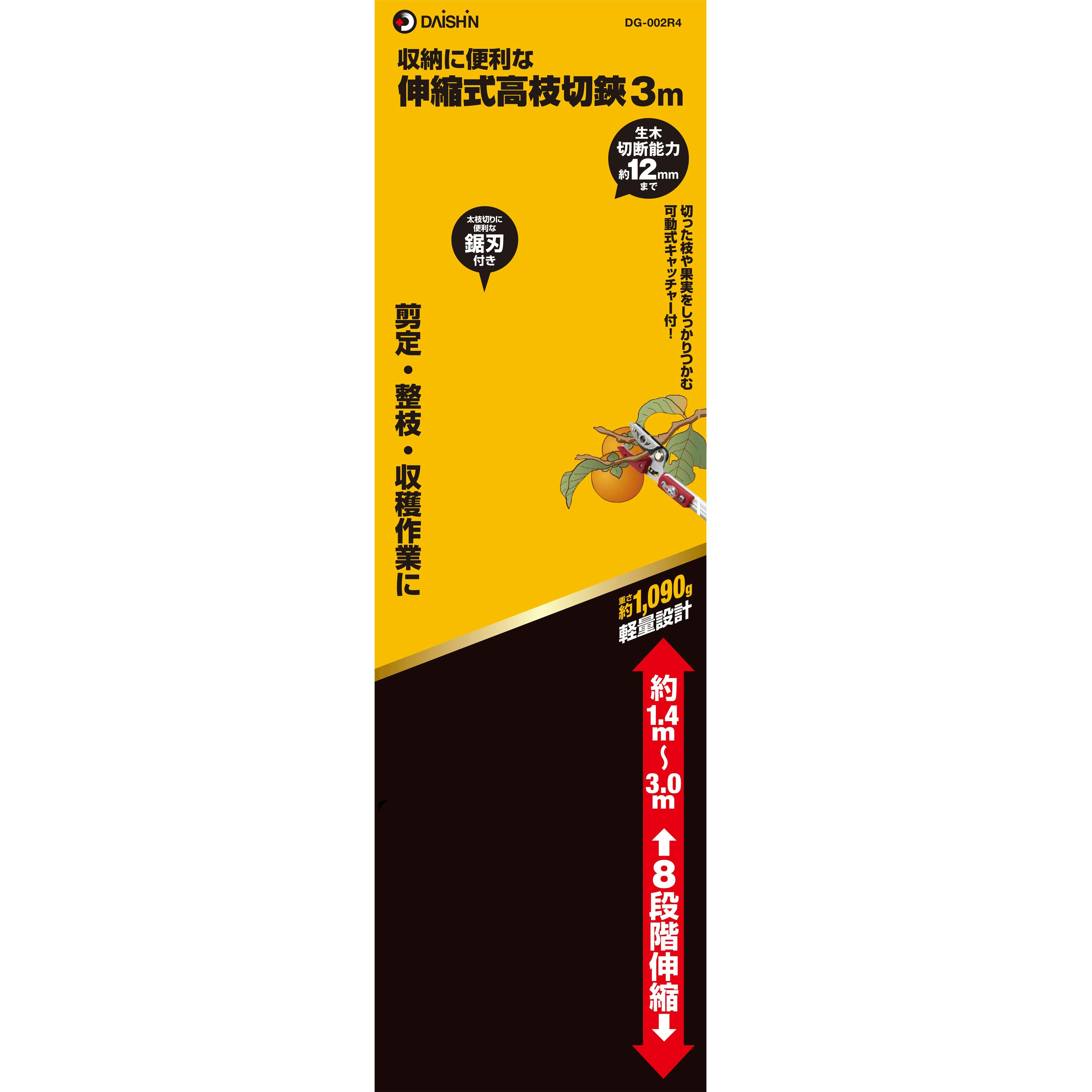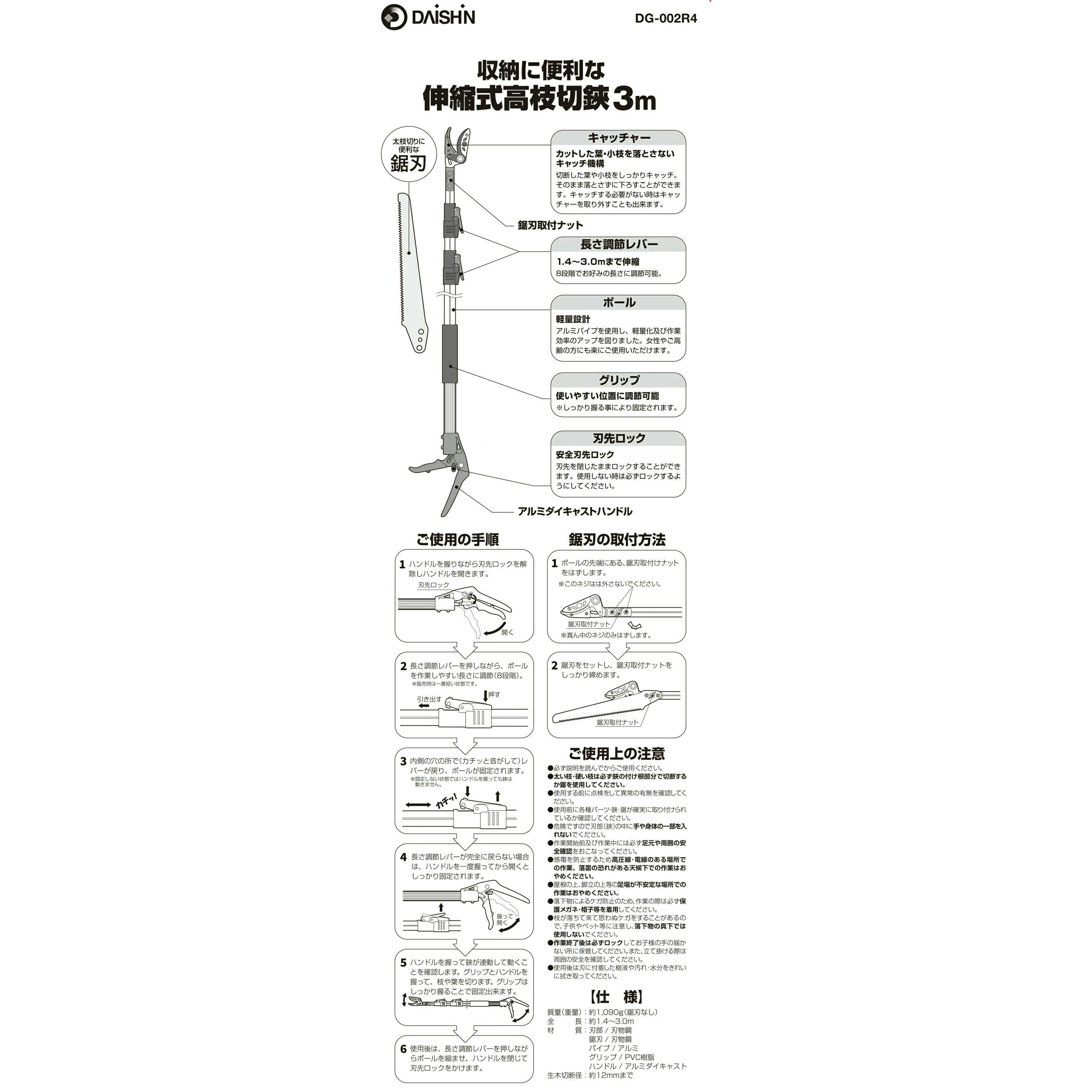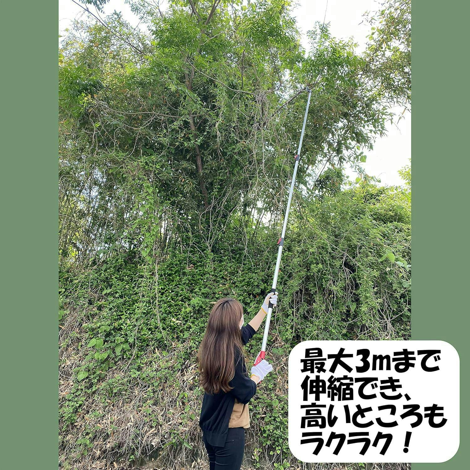 収納に便利な 伸縮式 高枝切りばさみ 3m 3段 のこぎり 高枝切鋏 伸縮式 DG-002R4 4939736702994