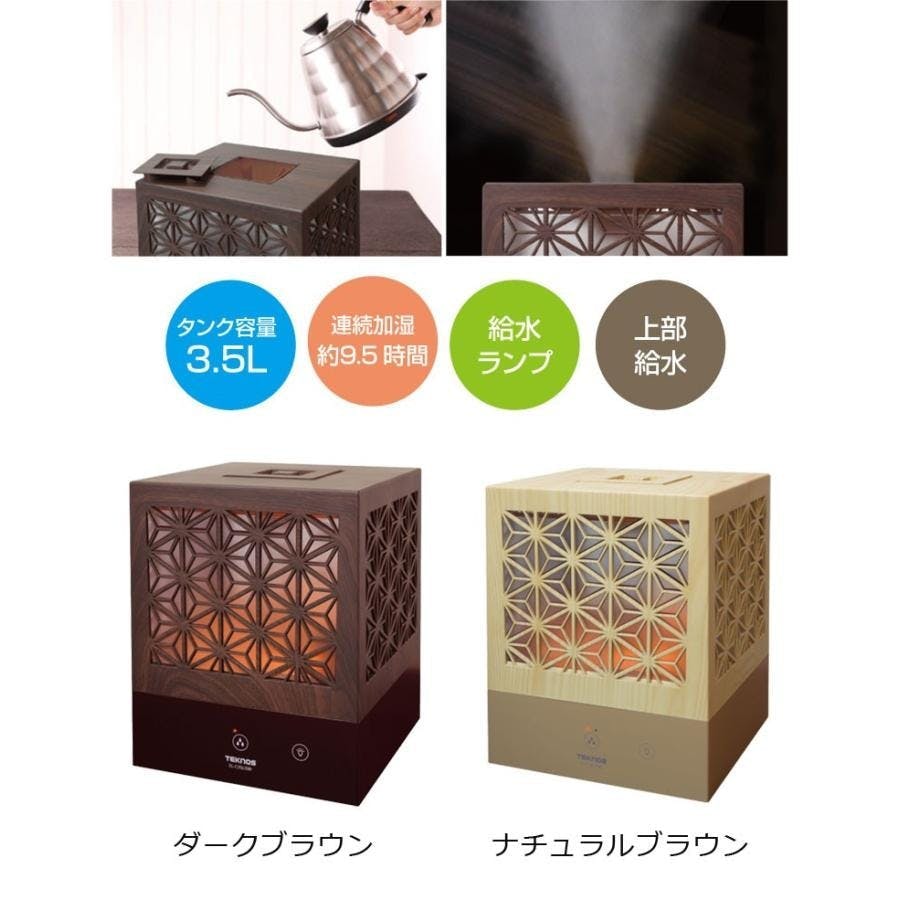 超音波加湿器 3.5L 組子調麻乃葉 ランプ付き 上部給水式 加湿器 加湿機 超音波式加湿器 卓上加湿器 おしゃれ 小型 和室 乾燥対策 冬 TEKNOS テクノス ナチュラルブラウン EL-C36L-NB
