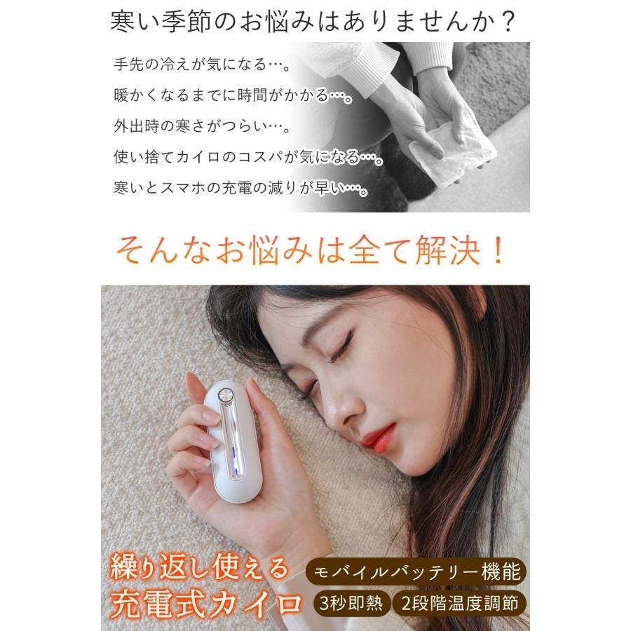 ・3秒即熱・温度切替2段階・モバイルバッテリー機能・コンパクト・使いやすいシンプル設計