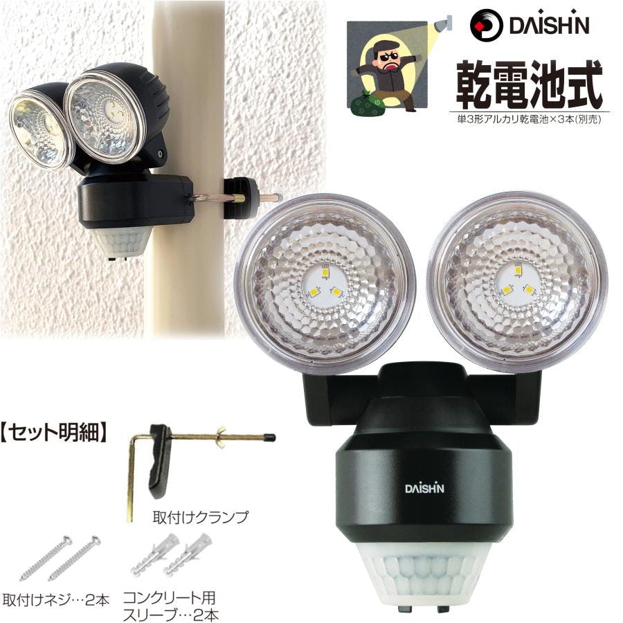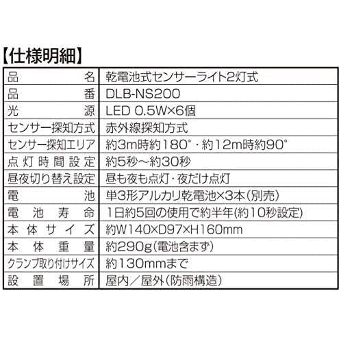 大進 乾電池式 センサーライト 2灯式 人感 センサー 防雨型 屋外用 夜間自動点灯 照明 電池式 防犯ライト 玄関 LED 暗くなると点灯 DLB-NS200