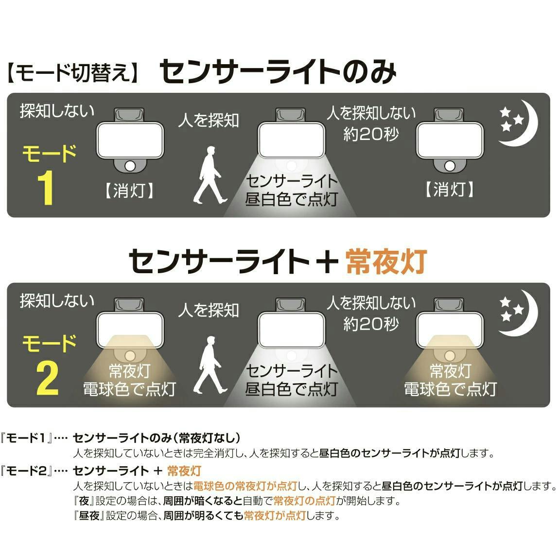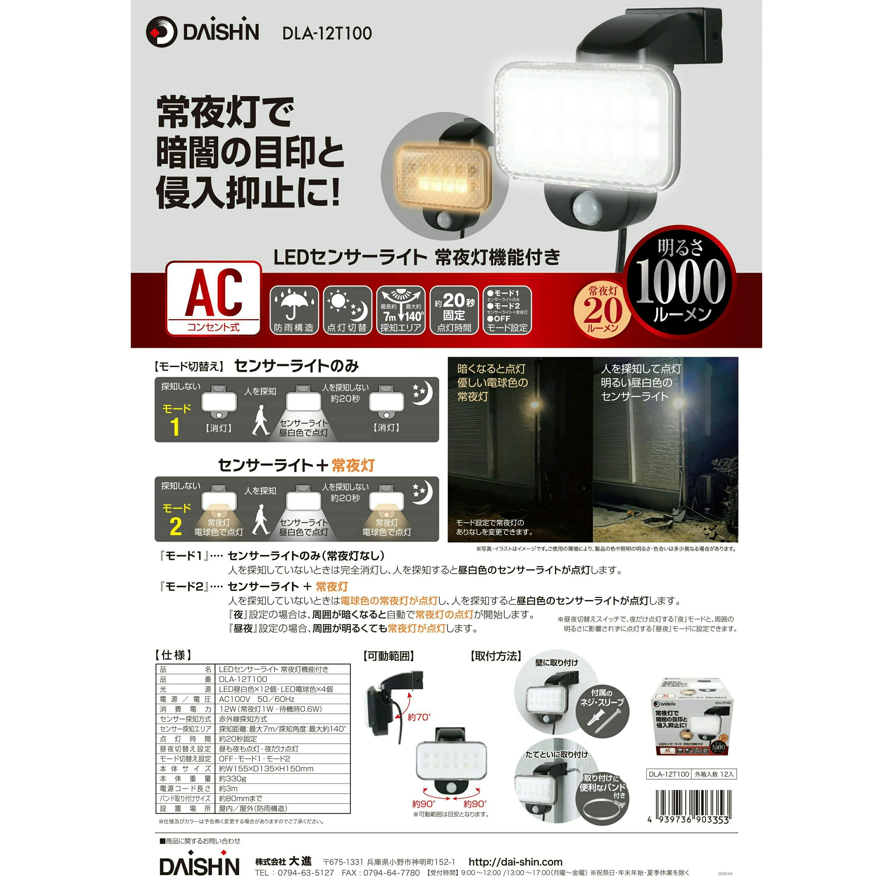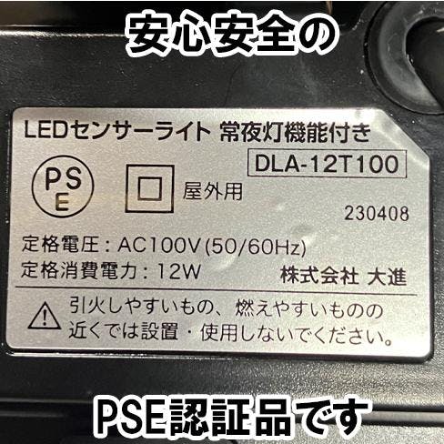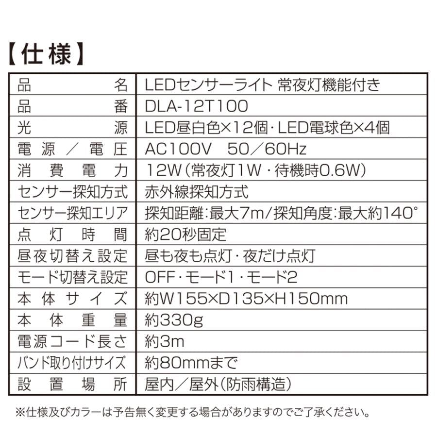 大進 人感 センサー 防雨型 屋外用 LED センサーライト 常夜灯機能付き 夜間自動点灯 照明 防犯ライト 玄関 LED 暗くなると点灯 DLA-12T100