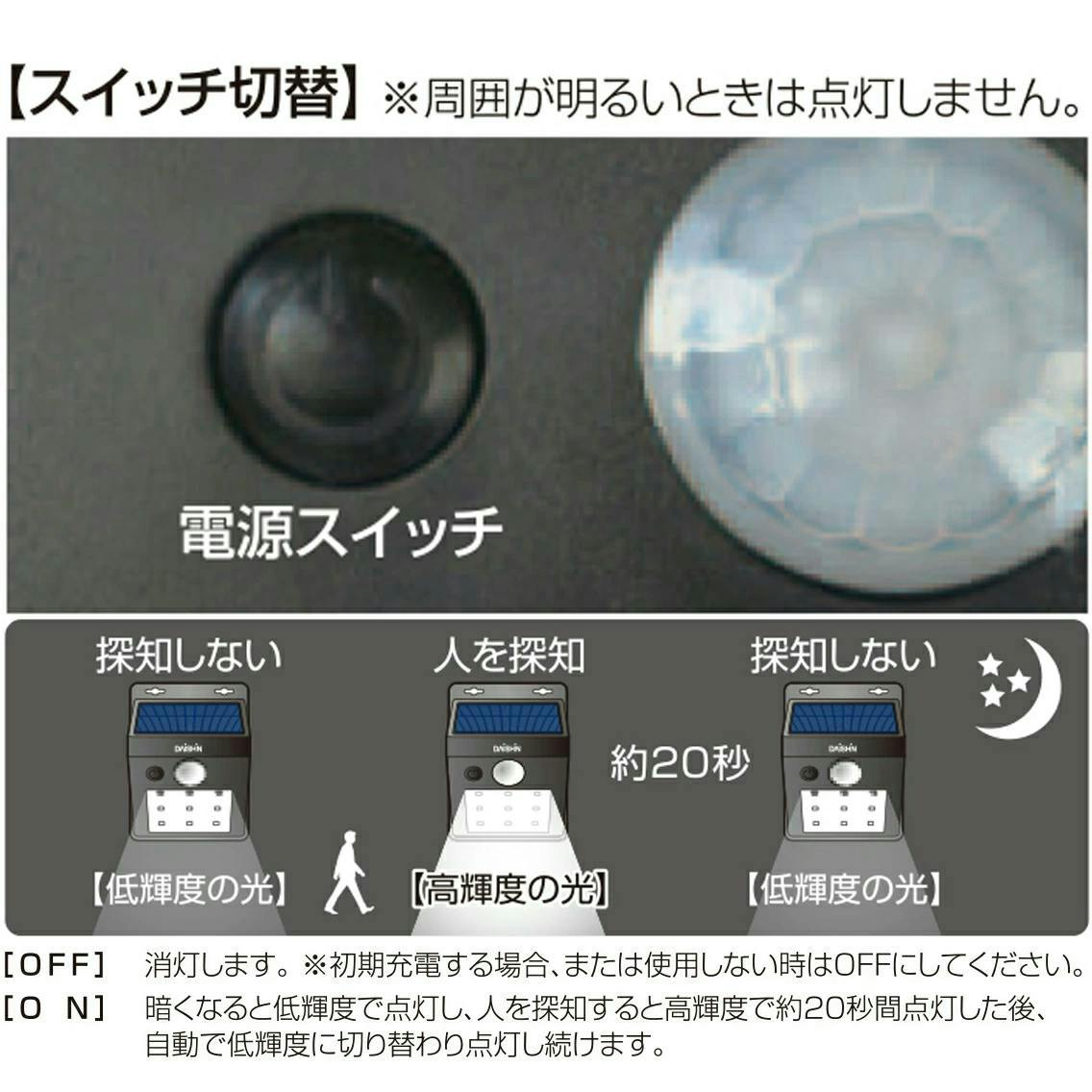 大進 ソーラー センサーライト 人感 センサー 防雨型 屋外用 夜間自動点灯 照明 マグネット 防犯ライト 玄関 DLS-WL001 4939736902103