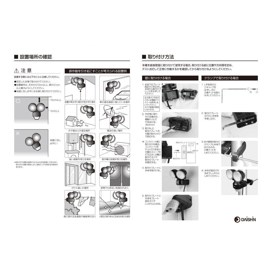 大進 スタンダード LED センサーライト 2灯式 人感 センサー 防雨型 屋外用 夜間自動点灯 照明 防犯ライト 玄関 DLA-N4T200 4939736902202